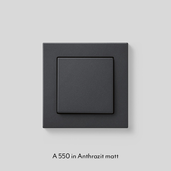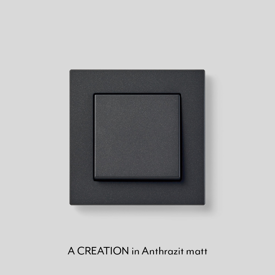 Die Schalterprogramme A CREATION, A 550 und A FLOW in Anthrazit matt bestehen zu 95 % aus Rezyklat nach DIN EN ISO 14021 und sind nachhaltig und ressourcenschonend. Das Rezyklat ist ein Material, das durch die Aufbereitung und Wiederverwertung von Kunststoffabfällen gewonnen wird. Im Recyclingprozess werden Wertstoffe gesammelt, sortiert, gereinigt und anschließend mechanisch zerkleinert. Dieses Material wird dann geschmolzen und zu Rezyklat verarbeitet, wie es in der DIN ISO 14021 beschrieben ist. Für diesen Prozess kommt Energie aus Wasserkraft zum Einsatz, um konsequent nachhaltig zu produzieren. Die so hergestellten Rahmen und Abdeckungen für Lichtschalter, Taster, Drehdimmer und Steckdosen von JUNG decken ein breites Anwendungsspektrum ab – von der konventionellen Installation bis zum Smart Home.